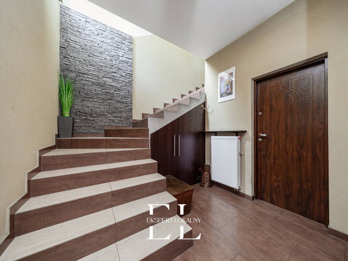 Parter 85,5 m/kw - 69,7 m/kw jest to powierzchnia zagospodarowana w 3 wysokie garaże w tym jeden wyposażony w kanał. Idealne miejsce pod prowadzenie niezależnej działalności gospodarczej. Garaże wyposażone w regały. Kotłownia o powierzchni 4,60 m2. Wiatrołap/ korytarz z wejściem do powierzchni mieszkalnej 11,20 m/kw. Wiatrołap w pełni zagospodarowany w szafę wnękową. Podłogi oraz schody - terakota.