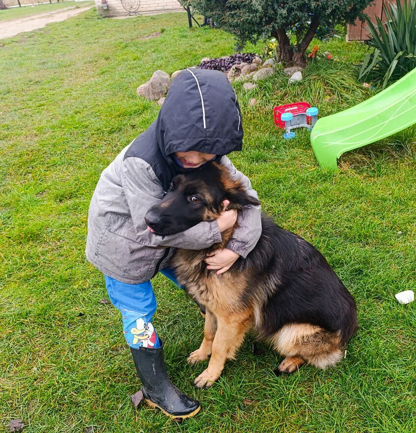 Suczka owczarka niemieckiego,Spokojna i lubi dzieci, nie skacze ,jest opanowana.